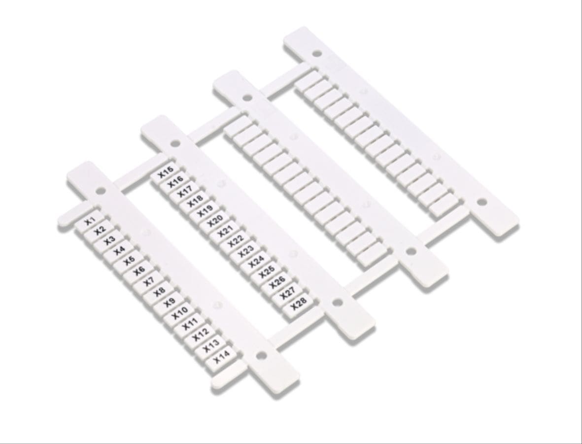 La gamma di targhette MG-CPM consente di siglare rapidamente e con semplicita tutti i morsetti componibili delle marche piu utilizzate nel mercato italiano ed estero. Le targhette di siglatura in formato a schede sono disponibili sia in strisce modulari a passo sia come targhette singole, questo permette di marcare in modo comodo ed efficace diverse sezioni di morsetti riducendo notevolmente i tempi di montaggio. Le targhette MG-CPM garantiscono un?elevata resistenza meccanica ed un?eccellente stabilita dimensionale, la stampa per trasferimento termico permette di stampare in modo permanente (indelebile) una scheda di targhette in circa 10 secondi; gli ampi steli consentono, tramite la stampa di informazioni aggiuntive, l?abbinamento di ogni singolo stelo di targhette al progetto e alle morsettiere, sulle quali vanno montate le targhette, facilitando e velocizzando l?organizzazione del lavoro. Le targhette MG-CPM consentono di identificare i morsetti di diversi Produttori. L?innesto sui morsetti avviene grazie agli agganci inferiori delle singole targhette.