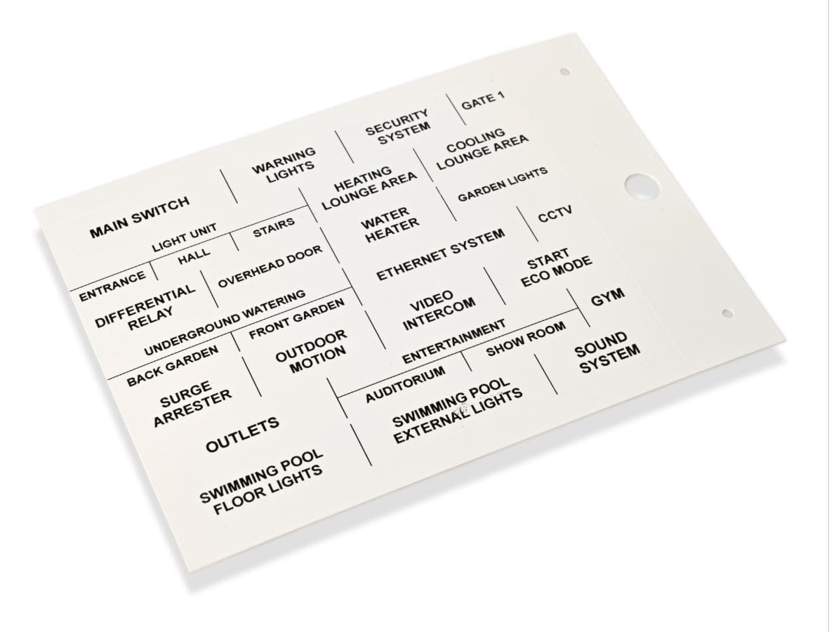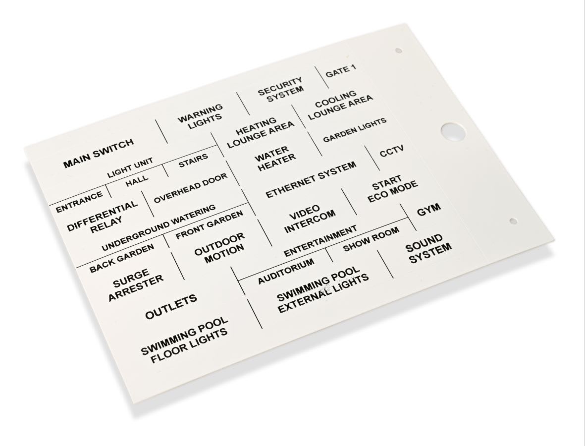 La serie MG-17.5-A comprende targhette ed etichette per la siglatura di componenti modulari. I colori grigio, rosso, blu, verde e nero sono fornibili a richiesta, in quantità da definire.