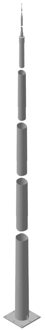 Palo di captazione componibile con fondazione a bicchiere o in calcestruzzo, collaudato secondo la norma DIN EN 62561-(1+2). Per la protezione da fulminazione diretta di impianti particolari, come ad es. impianti di biogas, impianti fotovoltaici a terra,impianti Ex, depositi di munizioni, ecc. Il palo e dimensionato secondo l?Eurocodice 1 (DIN EN 1991-1-4 + DIN EN 1991-1-4/NA) per una velocita delle raffiche di vento non superiore a 159 km/h. I pali vengono messi in opera con la fondazione a bicchiere (elemento prefabbricato) o nella fondazione in calcestruzzo sul posto con gabbia di ancoraggio. Versione con flangia per un montaggio veloce ed elementi conici del palo con sistema di innesto, incl. statica verificabile. Altezza sopra terra 24,88 m.