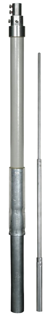 Tubo portante in PRFV/Al con terminale interno ed elemento a molla per l'equipotenzialità per la conduttura HVI long, per il montaggio separato (isolato) di captatori con punta di captazione. Per il rispetto della distanza di sicurezza da componenti metallici secondo CEI EN 62305-3 (CEI 81-10/3). Tubo D50 mm in vetroresina (PRFV), stabilizzato ai raggi UV, colore grigio chiaro, coefficiente di materiale km = 0,7. Esecuzione a corpo unico, combinato con la punta di captazione (D22 / 16 / 10 mm, lunghezz 2500 mm) in Al.