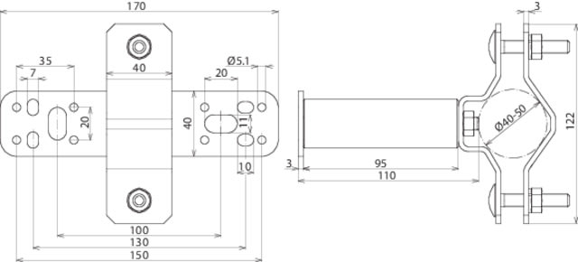 Angolare di fissaggio a parete per montaggio verticale, per aste di captazione D40, tubi portanti DEHNcon-H o DEHNiso-Combi.
