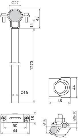 Distanziatore per realizzare la zona variabile di adattamento della conduttura HVI power. Lunghezza zona di adattamento variabile 350-900 mm. Con morsetto MV per la connessione all'equipotenzialita (Td 16 mm / Td 8-10 mm).