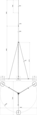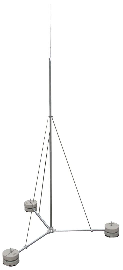 Asta di captazione indipendente, con treppiede pieghevole, provata secondo CEI EN 62561-(1+2). Per la protezione di grandi costruzioni sul tetto e la possibilità di adattamento all'inclinazione del tetto fino a max 10°. Le aste di captazione sono dimensionate conformi all'Eurocode per raffiche di vento max. 188 km/h. Esecuzione con altezza di 6000 mm, nella fornitura è compreso il morsetto di collegamento per i conduttori tondi 6-10 mm.