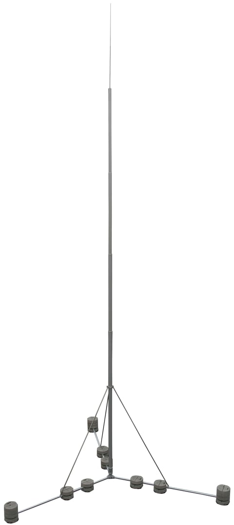 Asta di captazione indipendente con tripode pieghevole e montanti (20 x 20 x 2 mm) in acciaio INOX, provata secondo CEI EN 62561-(1+2). Per la protezione di grandi costruzioni sul tetto oppure per la posa su terreno compattato, senza lavori di fondazionee con la possibilità di adattamento all'inclinazione del tetto fino a max 5°. Le aste di captazione sono dimensionate conformi all'Eurocode per raffiche di vento max. 146 km/h. Esecuzione con altezza 14000 mm, compreso avallotto doppio di fissaggio per 2x Td 8-10 mm.