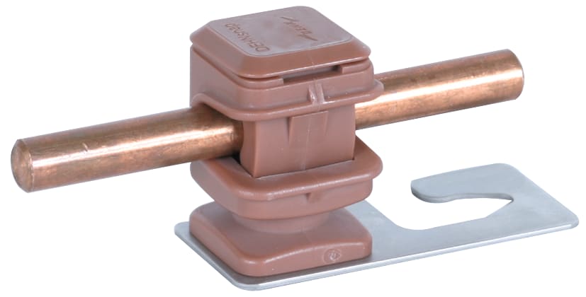Staffa portafilo per la posa di captatori su tetti in ondulato. Esecuzione dritta per tetti in ondulato profilo 5 e profilo 8 con staffa portafilo DEHNsnap, posa libera del conduttore, in materiale plastico resistente alle intemperie, stabilizzato ai raggi UV e privo di alogeni.