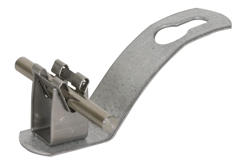 Staffa portafilo per la posa di captatori su tetti in ondulato. Esecuzione piegata per tetti in ondulato profilo 5 con staffa portafilo DEHNgrip, posa libera del conduttore.