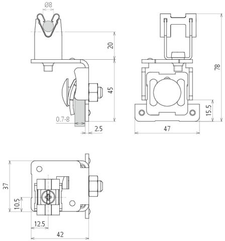 Staffa portafilo per tetti metallici per il fissaggio di dispositivi di captazione supplementari su coperture metalliche. Esecuzione per tetti con scanalatura verticale, con staffa portafilo DEHNgrip, posa libera del conduttore.