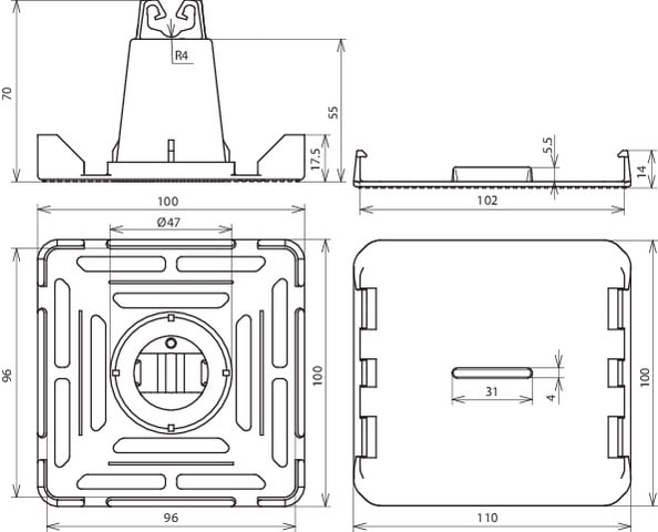Werkstoff des Halters - Kunststoff