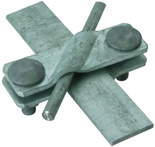 Morsetto di collegamento obliquo secondo CEI EN 62561-1, per collegamenti a croce e a "T" di conduttori tondi e piatti. Esecuzione con antisvitamento delle viti M10.