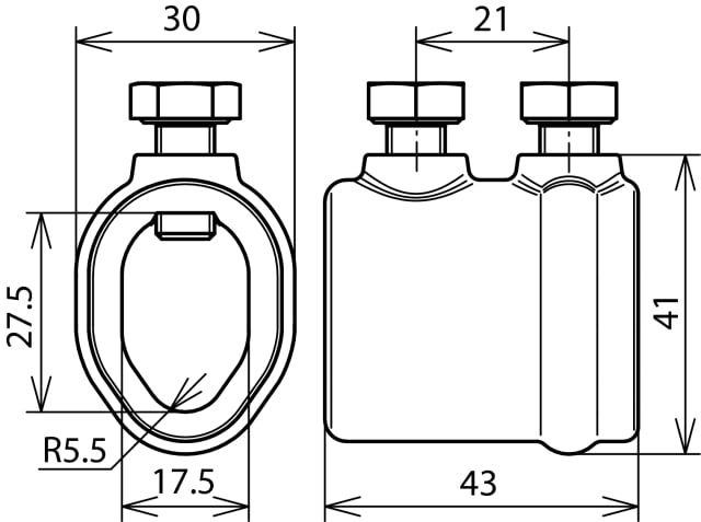 Manicotto di sezionamento secondo CEI EN 62561-1 per il collegamento di calate con le aste di adduzione a terra. Esecuzione chiusa, per aste di adduzione a terra Td 16 mm.