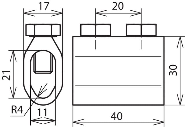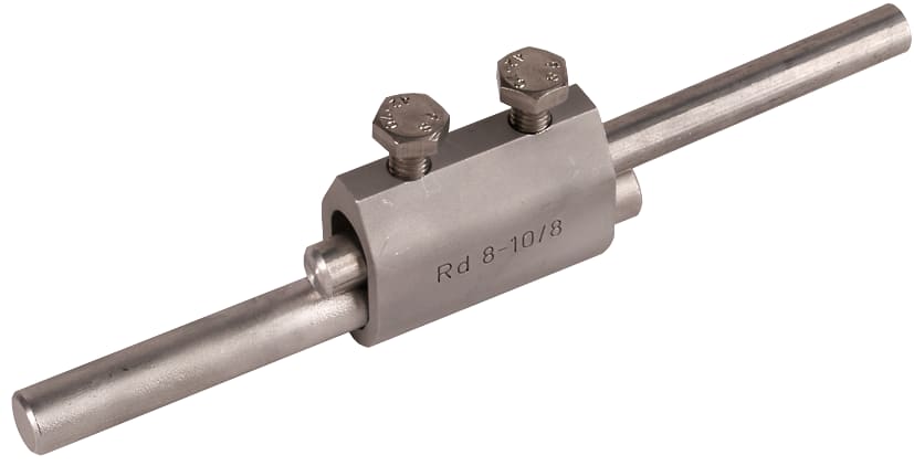 Manicotto di sezionamento secondo CEI EN 62561-1 per il collegamento di calate con le aste di adduzione a terra. Esecuzione aperta, per aste di adduzione a terra Td 10 mm.