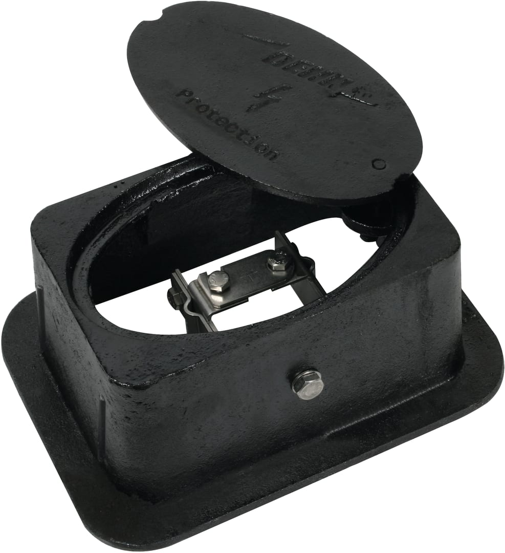 Pozzetto di terra secondo CEI EN 62561-5 per il montaggio sotto il suolo per separare la calata dall'impianto di terra durante le misurazioni. Esecuzione GG con punto di sezionamento integrato, facile da raggiungere.