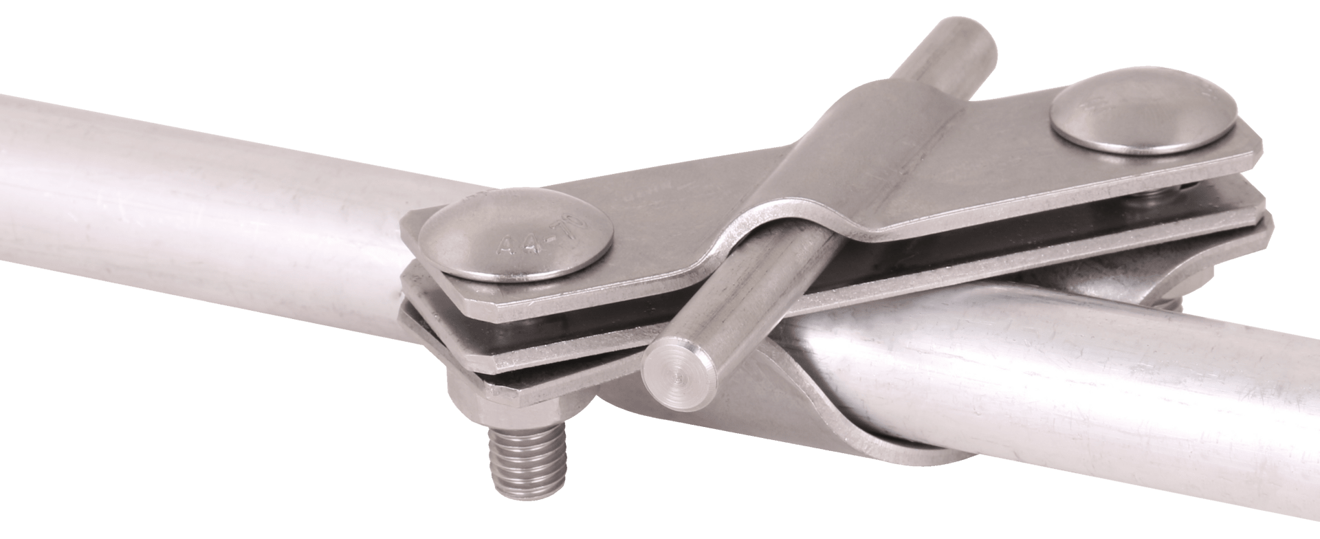 Collare di collegamento secondo CEI EN 62561-1 per la connessione di conduttori tondi, cordati e piatti su dispersori di profondita. Esecuzione obliqua con vite a testa piatta anche per conduttori di terra non tagliati.