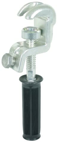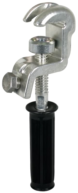 Pinza di terra universale con manico isolato in plastica come elemento di connessione sul lato terra secondo la norma EN/IEC 61230 (DIN VDE 0683-100) per punti fissi a sfera, punti fissi a T, conduttori piatti e tondi per l'equipaggiamento sul lato terradi corde di terra e di corto circuito. Con dispositivo antirotazione, esecuzione PK1.