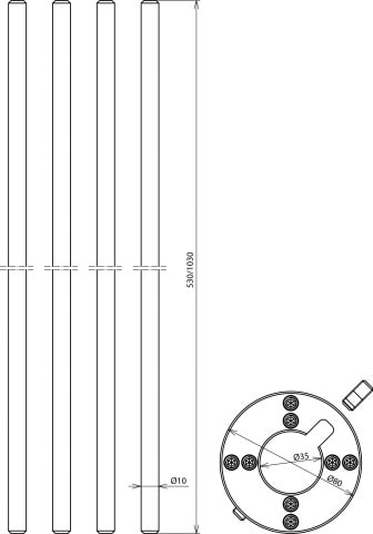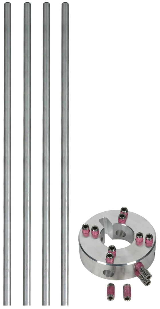 Set di fissaggio per il montaggio di punte di captazione laterali/orizzontali su tubi portanti HVI long e HVI power. Costituito di quattro punte di captazione e un anello di fissaggio.