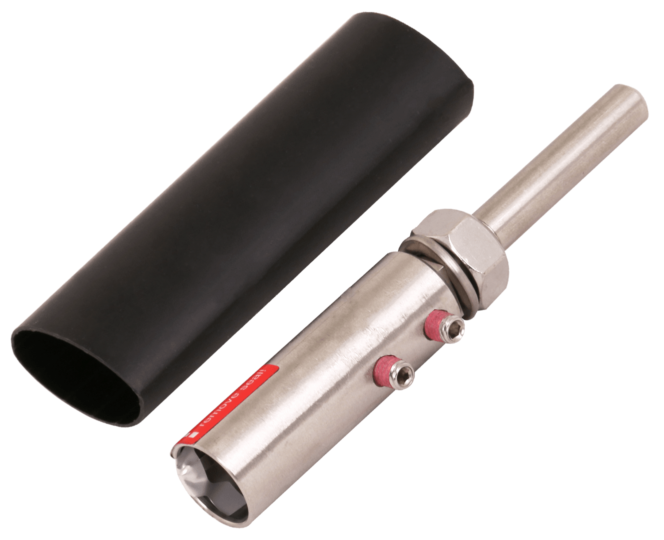 Elemento di connessione per collegare la conduttura HVI light plus ad altre parti della protezione dai fulmini esterna o dell?impianto di messa a terra. Incl. un tubo termorestringente.