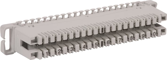 Forma costruttiva 2 per tecnica di collegamento LSA-PLUS, per la connessione di 10 coppie di fili sul lato cavo e lato permutatore, per un collegamento non sezionabile. È possibile l’innesto di scaricatori DPL 10 G3. Circuito di protezione solo in parallelo.