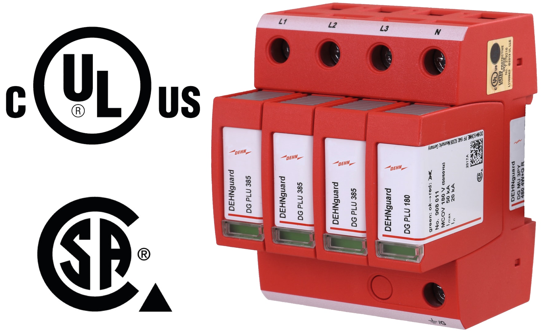 Limitatore di sovratensione multipolare DEHNguard MU, Open-Type 1 SPD omologato ANSI/UL 1449, costituito da basetta e moduli di protezione innestati. Elevata sicurezza dell?apparecchio tramite l?unita di monitoraggio con Thermo-Dynamic-Control. Permette la protezione di utenze finali. Per la protezione di sistemi trifase Wye.