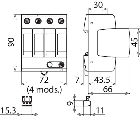 Limitatore di sovratensione multipolare DEHNguard MU, Open-Type 1 SPD omologato ANSI/UL 1449, costituito da basetta e moduli di protezione innestati. Elevata sicurezza dell?apparecchio tramite l?unita di monitoraggio con Thermo-Dynamic-Control. Permette la protezione di utenze finali. Per la protezione di sistemi trifase Wye.
