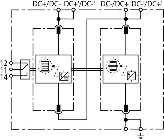 Scaricatore coordinato per corrente di fulmine, bipolare, DEHNsecure modular, SPD a spinterometro con classificazione Tipo 1 secondo EN 61643-11. Tecnologia spinterometrica specialmente adatta per l'impiego in circuiti elettrici in DC. Per la protezione di impianti elettrici utilizzatori in corrente continua, anche in caso di fulminazione diretta. Per l'impiego nel concetto di protezione da fulminazione a zone, ai passaggi 0A – 1.