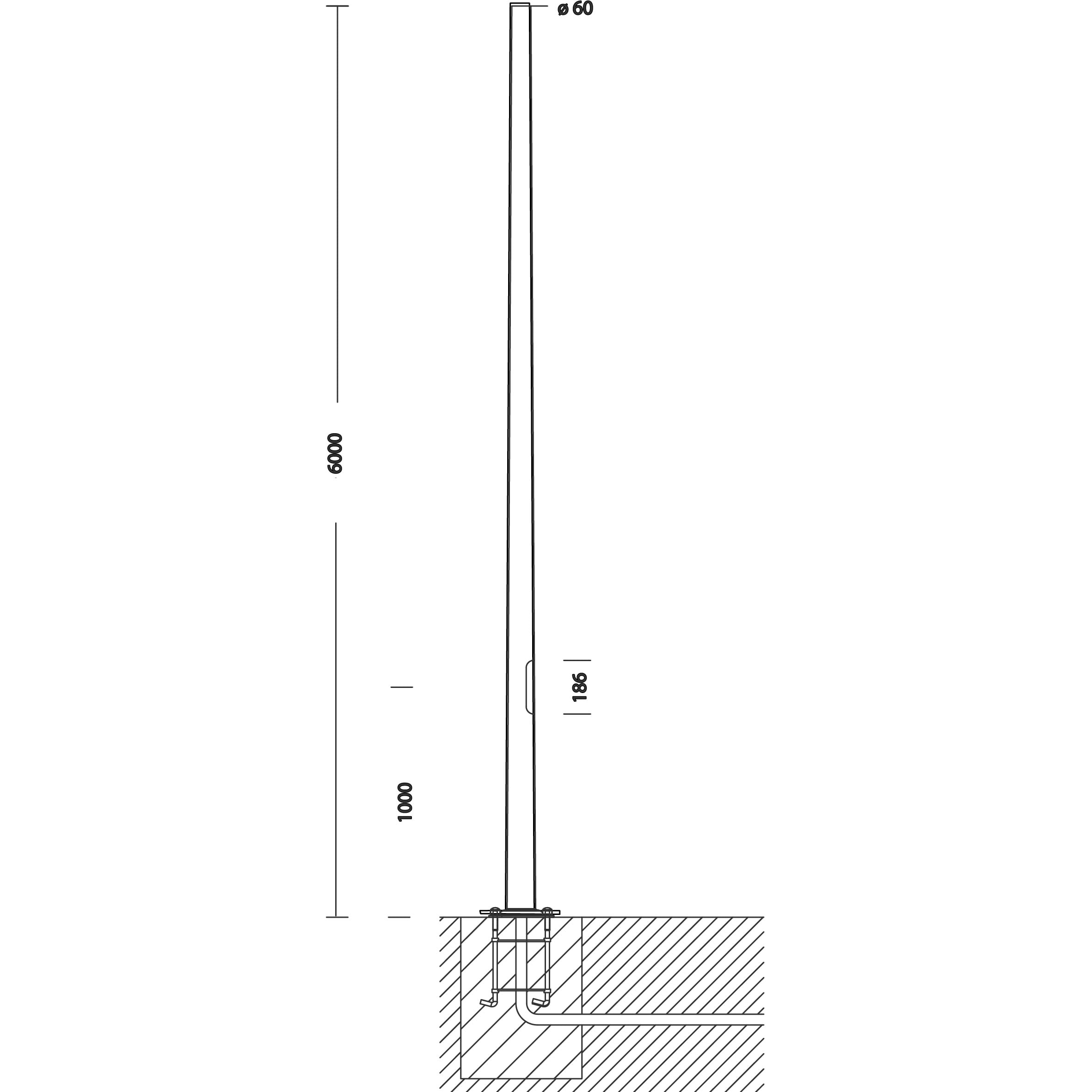 1480 palo conico in acciaio con base. Pali in acciaio laminato a caldo e privo di saldature. Predisposto con foro per ingresso cavo di alimentazione, con attacco testa palo ø60. Per la versione con base è necessario acquistare 4 tirafondi da interrare, bulloneria e tappi. Dimensioni finestra di ispezione 45x186 (h 8000), completo di un portafusibile di protezione, 2 fusibili da 16A, morsettiera asportabile 4 poli/3 vie = 10mmq e derivazione 2,5mmq. Di serie in classe di isolamento II. Attenzione quando si utilizzano apparecchi in classe di isolamento I prevede le connessioni per la messa a terra. N.B.: La possibilità di accoppiare una composizione al palo è subordinata alla verifica della resistenza alla spinta del vento, nelle zone del territorio previste dalla norma D.M.14/01/2008. Secondo le ipotesi di carico previste dalle norme EN 40-3-1. ø60mm x L 8000mm. Grafite.