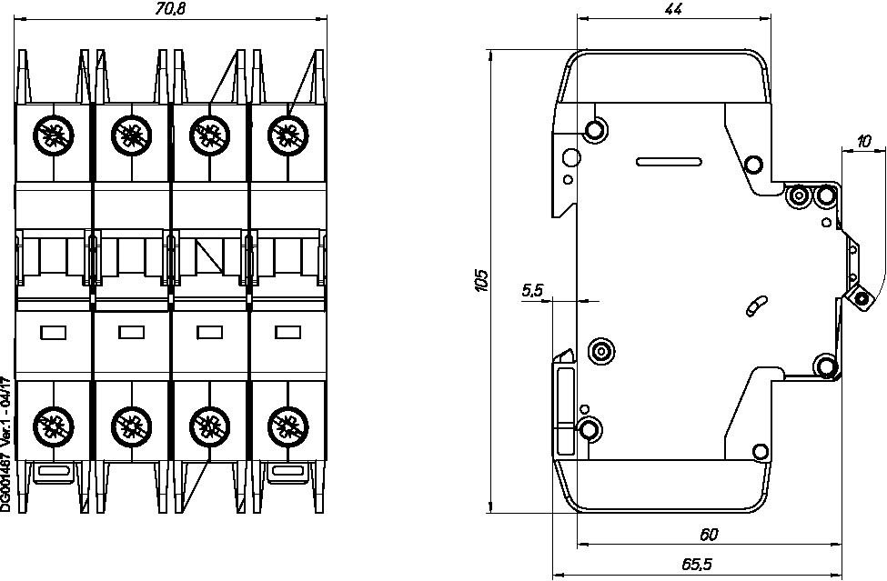Interruttore automatico miniaturizzato di alta qualità, conforme a UL 489, CSA C22.2 n.5 e anche IEC 60947-2 standard, per applicazioni, consentito per contatto UL 1077 o CSA C22.2 n. 235, interruttore ausiliario e sganciatori di tensione adatti per installazioni successive, con viti terminali rimovibili per utilizzo con capicorda ad anello, indicatore posizione di contatto rosso - verde, montaggio facile su guida DIN