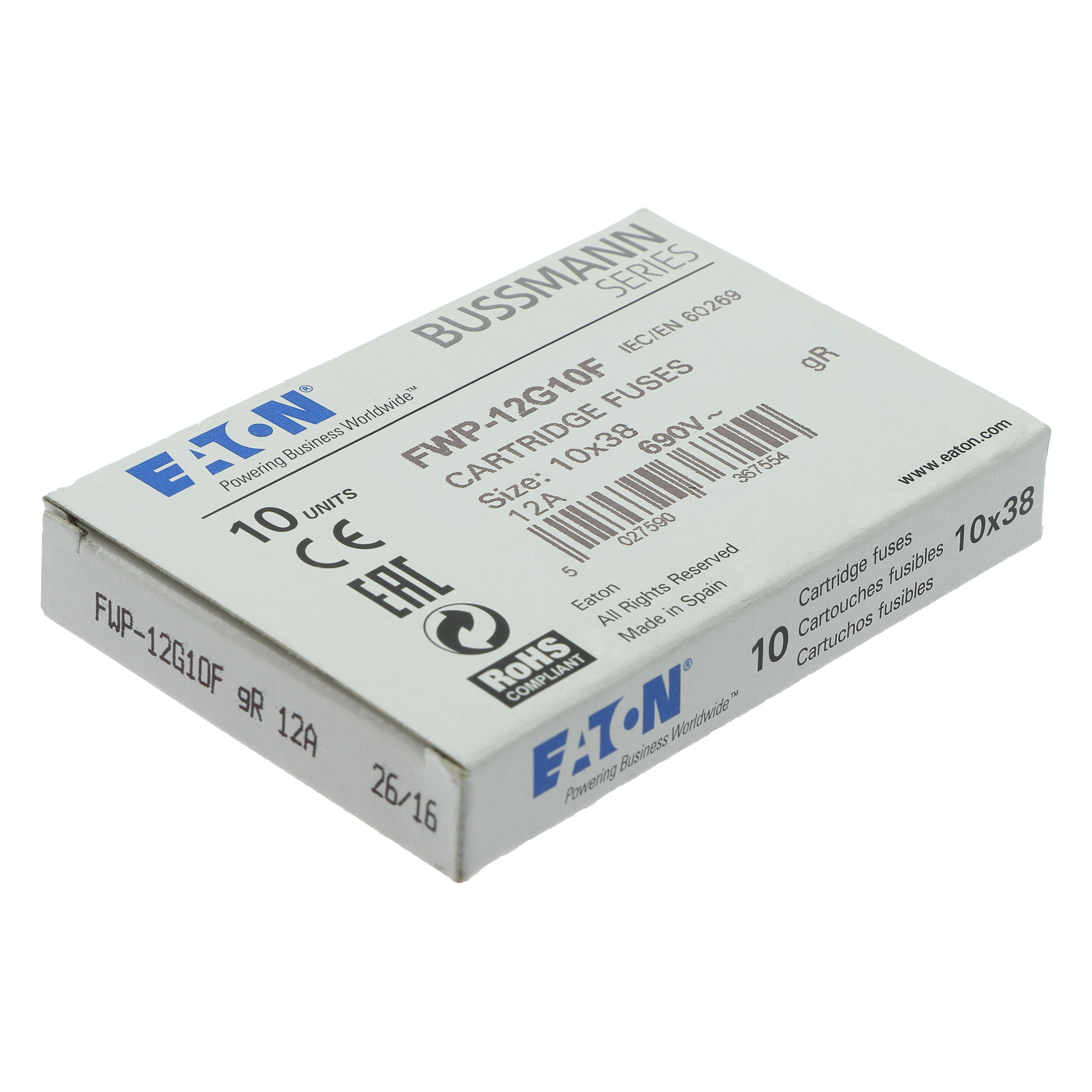 EATON - EAOFWP-12G10F FWP-12G10F 12A 690VAC CLASS GR 10X38MM F - FWP-12G10F