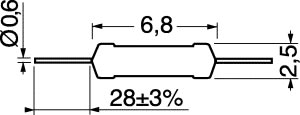 Resistenza a strato di carbone. • Potenza: 0,25W a 70° • Tensione di lavoro: 250V • Tensione di sovraccarico: 500V