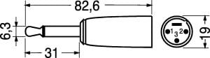 ADATTATORE DA SPINA 6,3 MONO A SPINA MICROFONO 3 POLI. CORPO:ottone nichelat. PER PRESE Ø 6,3 PANN.:4/3132. PER PRESE Ø 6,3 VOL.:4/3232. PRESE PANN.:4/4827. PRESE VOL.:4/4823.
