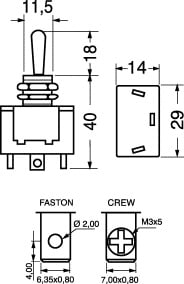 DEVIATORE 1 SCAMBIO. PORTATA:10 A - 250 V o 15 A - 125 V. CORPO:resina fenolica. CONTATTI:argento. TERMIN.:a vite - faston 6,35. PER FASTON:4/11520. COPRIFASTON:4/11530. CAPPUCCIO PVC:4/6710. Terminali: a vite.