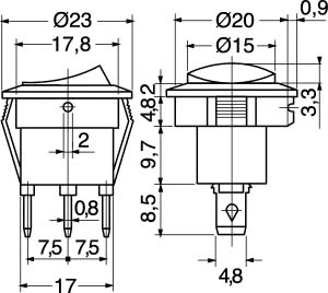 INTERRUTTORE A BILANCERE LUMINOSO DA PANNELLO. PORTATA:6,5 A-250 V / 13 A-125 V. TENS. PROVA:1500 V / 1 min. CORPO:nylon rinf. vetro. CONTATTI:ottone nichel. TERMIN.:faston passo 4,80. FISSAGGIO:autobloccante. PER FASTON:4/11525. COPRIFASTON:4/11560. Col.Tasto: Rosso.