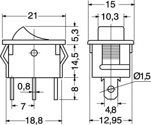 DEVIATORE UNIPOLARE MINIATURA. PORTATA:6 A - 250 VCA. CORPO:nylon rinf. vetro. CONTAT.:ottone nichelato. TERMIN.:faston passo 4,80. FISSAGGIO:autobloccante. PER FASTON:4/11525. COPRIFASTON:4/11560.
