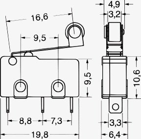 DEVIATORE MINIATURA. PORTATA:5 A - 250 V. FORZA AZION.:50 gr. CORPO:pvc. CONTATTI:ottone argent. TERMINALI:a saldare.
