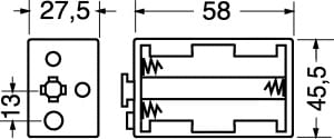 PORTAPILE PER 6 PILE STILO (AA-UM3). CORPO:polipropilene. CONNESSIONE:a bottone. MEDIANTE:4/11012 - 4/11013. PER BATTER.NI-CD:30/212. PER BATTER.NI-MH:30/208. PILE ALCALINE:30/24050 - 30/25050.