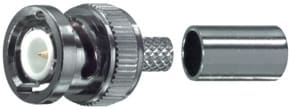 Spina BNC a crimpare • Tensione lavoro: 500V • Corpo in ottone nichelato • Temperatura lavoro: -65°C +125°C • Impedenza: 50 Ohm • Isolamento: poliprene • Per cavo: RG 58 • Norme MIL: UG1785