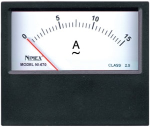 AMPEROMETRI A FERRO MOBILE MISURE IN CA. Con dispositivo d'azzeramento. MATER.:resina trasp. antiurto. CLASSE:2,5. Portata: 15 A ÷ 0A.
