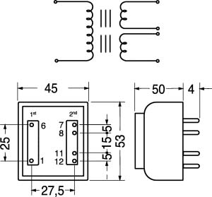 TRASFORMATORI DI ALIMENTAZIONE POTENZA 10 VA. Costruiti secondo normeCEE 96-3 – EN 61558. CLASSE B. Piedinatura a norme DIN per c.s. a passo 5 mm. Isolati in resina epossidica bicomponente a norme UL 94. INGRESSO:230 V-50/60 Hz. RIGIDITÁ DIELETRICA:3750 V. TEMPERTURA LAVORO:-15°C÷+130°C. DOPPIO SECONDARIO. Tensione Uscita: 12V.