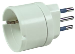 ADATTATORE SPINA 10A - PRESA SCHUKO. Con spina 10A e presa schuko. PORTATA:10A-250V. POTENZA MAX:1500 W. CORPO:tecnopolimero. PER PRESE PANN.:28/1046. PER SPINA SCHUKO:28/1048. Colore: Nero. Conf.Comm.: 50.