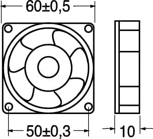 VENTILATORE ASSIALE SUPPORTO BRONZINE 60x60x10 mm. ELICA:poliestere termopl. TEMP. LAV.:-10°C÷+70°C. FATT. RUMORE:33 dB. GIRI MIN./RPM:5100. CFM:24,5. GRIGLIA:45/9648. Per computer, strumenti, ali-mentatori, amplificatori, tele-visori, videogiochi, videoregi-stratori.