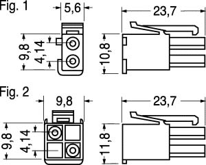 CONNETTORI MASCHI VOLANTI AMP SERIE MINI-UNIVERSAL MATE-N-LOK. Compatti e leggeri, sono ideali per l'elettronica con elevata densità di componenti. Superano le prove previste dalla normativa DIN VDE 0627/06.86. Accettano sia contatti maschi che contatti femmina. PASSO:4,2 mm. CORPO:poliammide 6,6 UL94 VO o UL94 V2. TEMP. LAV.:-20°C÷+95°C. PORTATA MAX:5 A. TENSIONE MAX:300 V. ACCOPPIABILI AICONNETTORI:98/51400. CONTATTI:98/51304 98/51208. PINZA:98/49850. Grado Autoest.: UL94V2. N.Poli: 4.