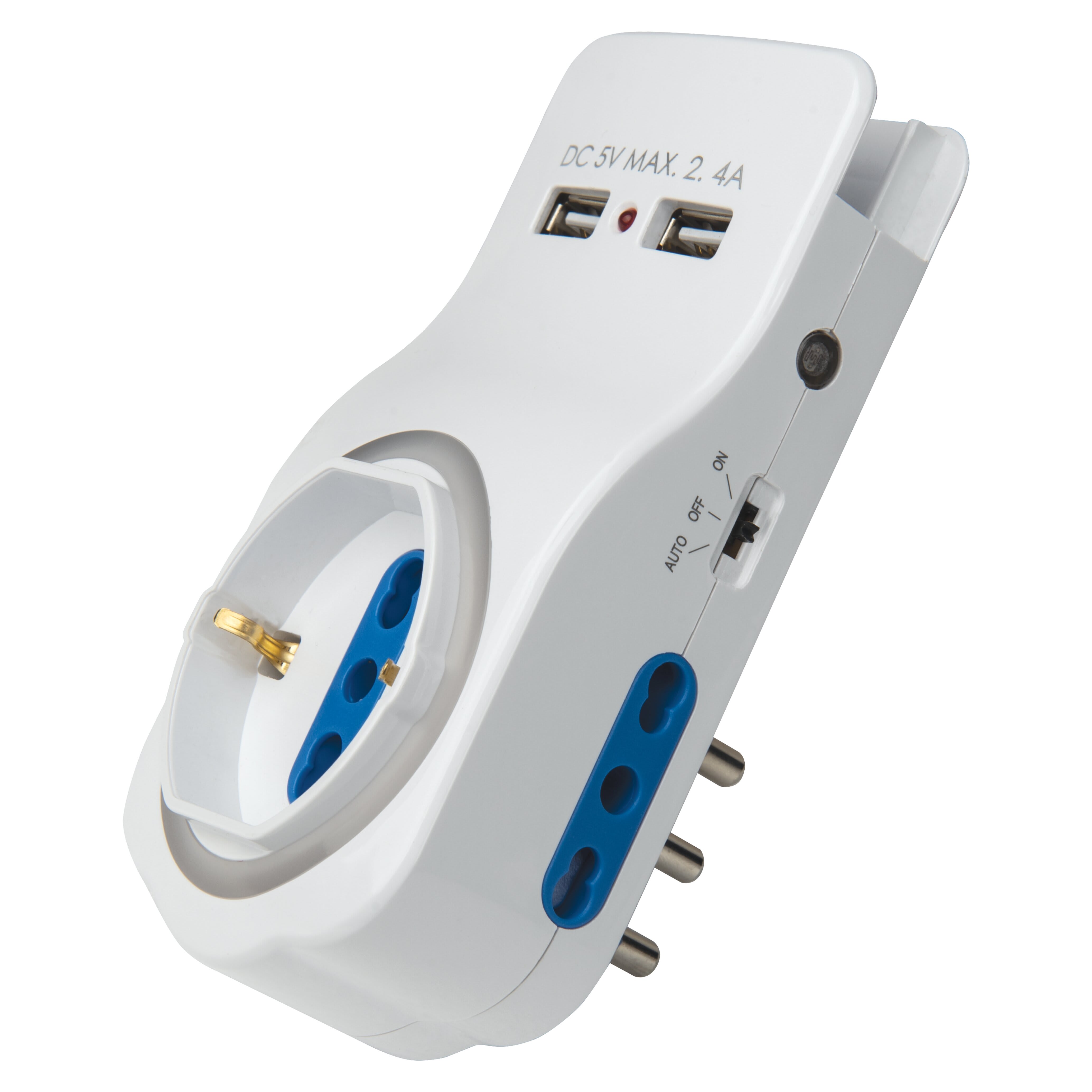 ADATTATORE SP 16A 2P+T + 1 SCHUKO 2P+T+2BIV. USB 2400MA - LUCE NOTTURNA