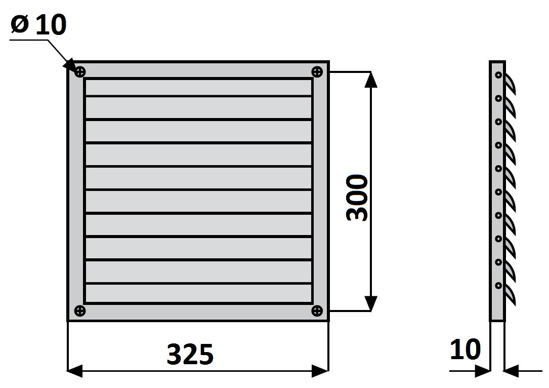 • Montata all’esterno, si apre ad apparecchio acceso e si richiude per gravità ad apparecchio spento • Evita l’ingresso di vento, pioggia o volatili • Telaio in acciaio verniciato con polveri epossidiche • Alette in PVC rigido.