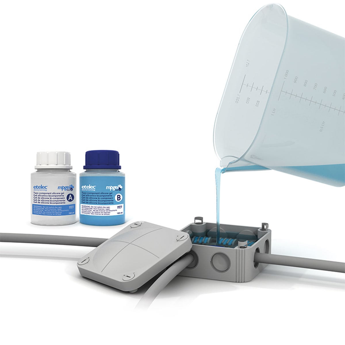 Gel bicomponente riaccessibile a reticolazione rapida per riempimenti isolanti e sigillature. Reticolazione rapida: 12 minuti a 23 ?C che permette un ridotto tempo di attesa per la messa in tensione della connessione. Ideale per isolamento di connessioneelettriche, schede e componenti elettronici in bassa tensione (0,6/1 kV).