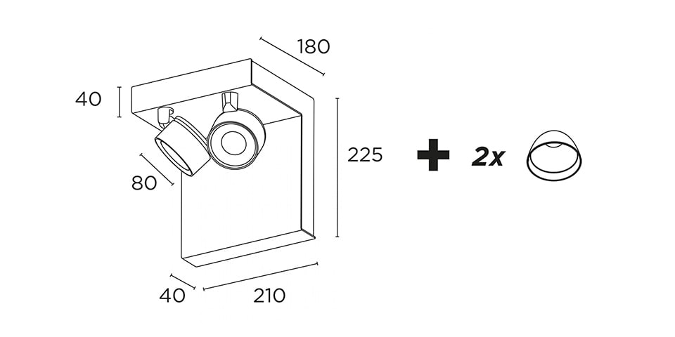 Apparecchio a parete con sorgenti chip on board (COB) alimentate a corrente costante attraverso driver integrati nel corpo dell?apparecchio. Le sorgenti sono installate su una piastra di alluminio che garantisce la corretta dissipazione delle unita luminose. Le sorgenti della componente diretta sono installate su due corpi ottici orientabili di 359? sul piano orizzontale e di +90?/-90? su quello verticale. Ottiche di riflessione in policarbonato verniciato finitura metallizzata, da ordinare separatamente. Fasci disponibili Spot, Medium, Large, Extra Large. Corpo dell?apparecchio in lamiera piegata e verniciata a liquido.