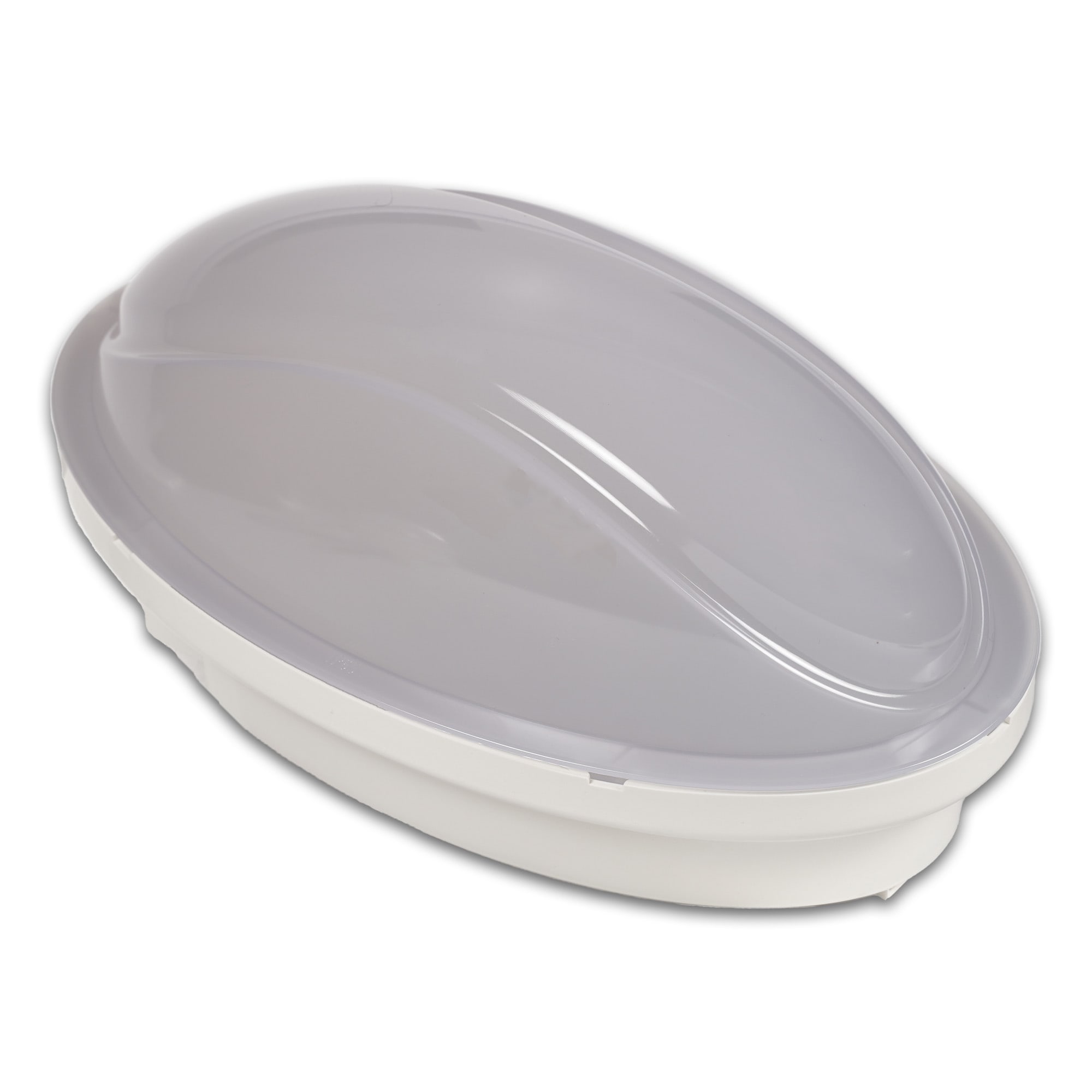 Plafoniera ovale PANDA MIDI LED 12W 6500K IP65\ndimensioni 215x125x110 mm.\ncalotta in policarbonato opalino, colore bianco