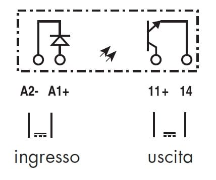 Relè a stato solido. N°contatti: 1 NO numero di fasi: 1 adatto per installazione in serie: si Volt DC: 5 V. tensione d'esercizio: da 1.5 a 33 V. corrente d'esercizio nominale Ie per AC-1: 6 A. Alimentazione: DC commutazione a punto neutro: no Categoria di protezione: RT III Accessori: Zoccolo S.93