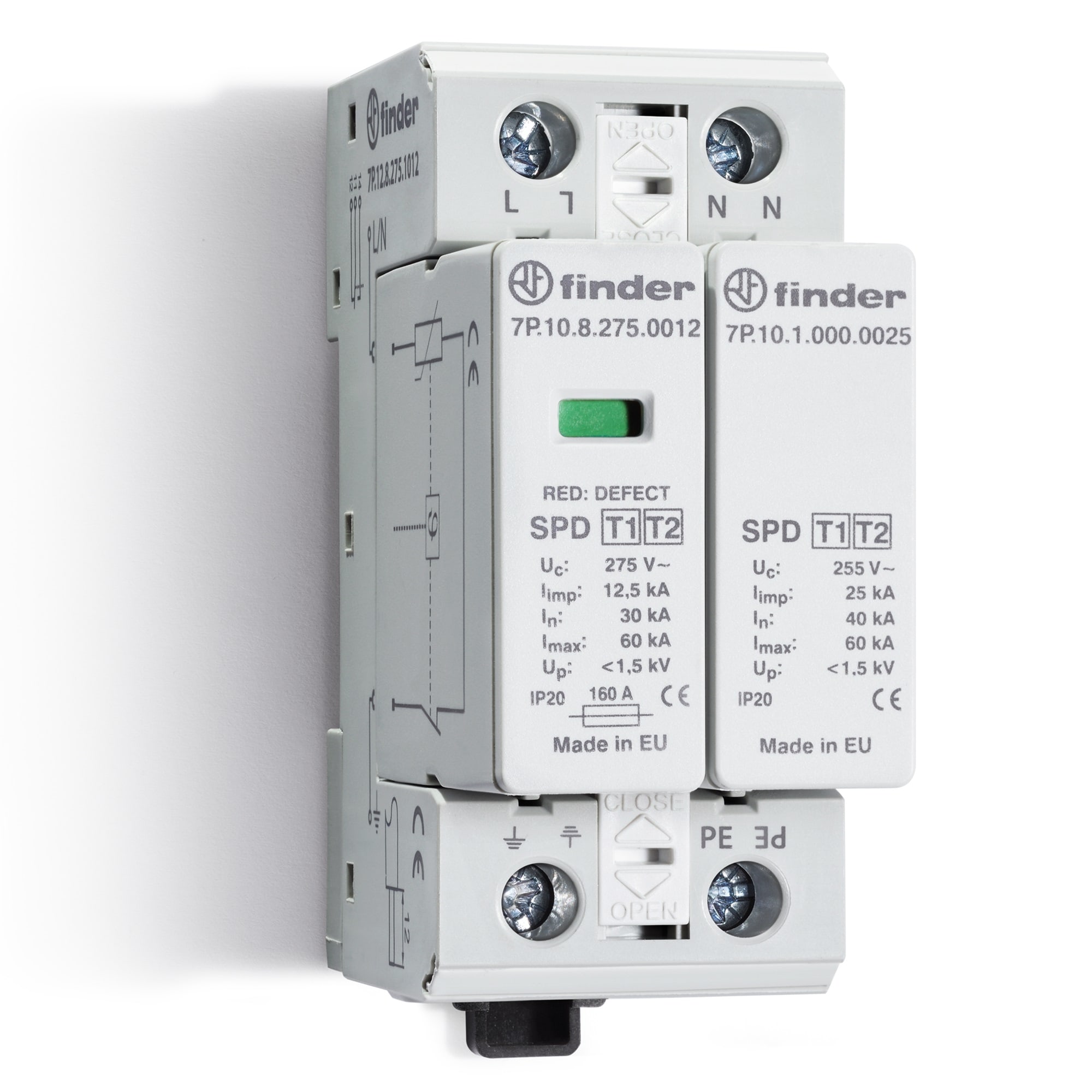 FINDER SPA - FIN7P1282751012 SPD CLASSE1+2 MONOFASE 2P 275VAC 1+1 12. - 7P1282751012