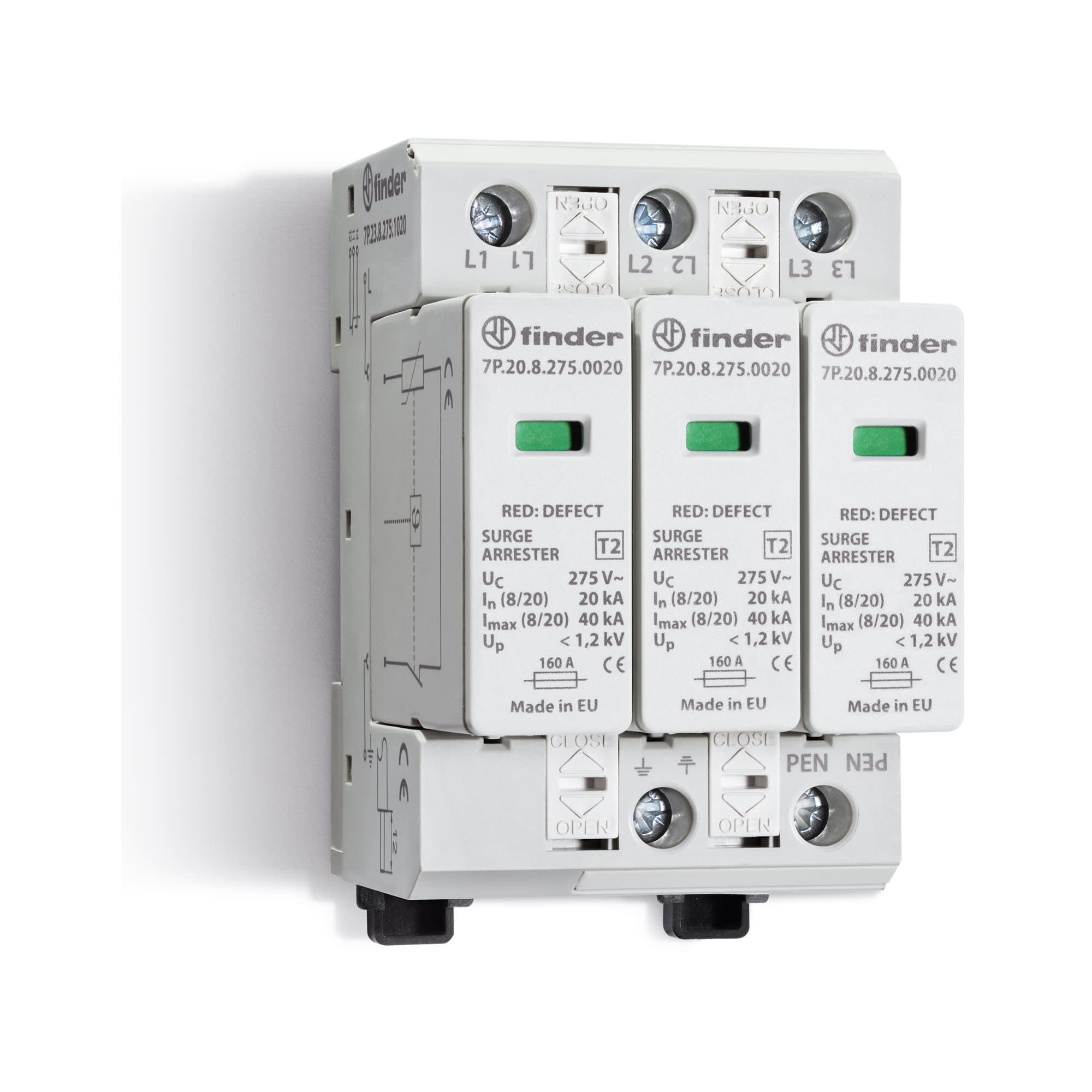 FINDER SPA - FIN7P2382751020 SPD CLASSE2 TRIFASE 3P 275VAC 3+0 20KA - 7P2382751020