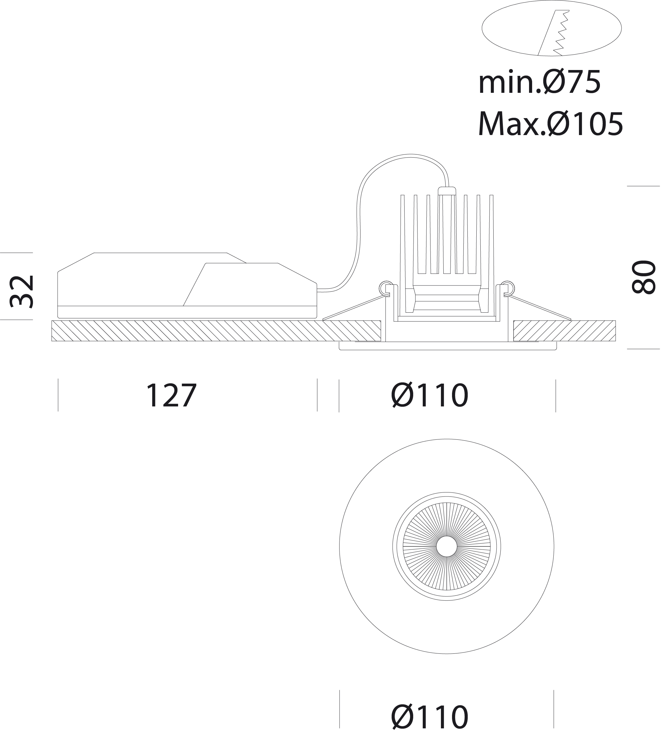 Einbaudurchmesser: