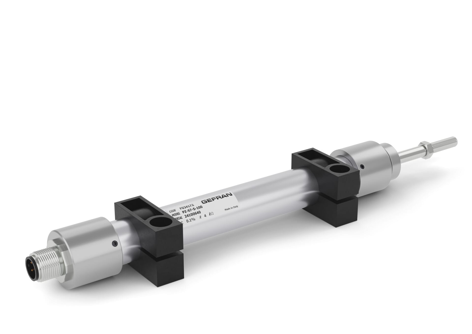 I trasduttori lineari ed angolari di posizione consentono il rilevamento della posizione di parti meccaniche in movimento. La rilevazione della posizione di tipo assoluta avviene in tempo reale grazie alla tecnologia potenziometrica dove pista resistiva e collettrice sono collegate elettricamente per mezzo di spazzole a contatto diretto, montate su di un cursore, datore fisico della posizione. Il corpo dei trasduttori di posizione e costituito da diversi materiali come l alluminio anodizzato, l acciaio inossidabile AISI 316 o in materiale plastico PBT caricato con fibre di vetro, dove quest ultimo e un polimero prevalentemente utilizzato nel settore automotive, resistente ai raggi UV, nebbie saline, acidi e altri agenti aggressivi. I potenziometri Gefransono partitori di tensione alimentabili da 1 a 60Vdc. La custodia cilindrica da 3/4 pollice (19mm), unitamente ad un elevato grado di protezione (IP67) dove puo essere necessario operare in presenza diretta di polveri, detriti o liquidi (non in immersione prolungata), rende la serie PZ67 particolarmente versatile per la risoluzione di una gamma sempre piu ampia di applicazioni. Robusto stelo inox con parte filettata M5 per il rilevamento delle parti meccaniche in movimento. Ideale per le macchine di taglio e lavaggio del vetro o per macchine levigatrici e sabbiatrici qualora ci sia esposizione diretta a liquidi o anche semplicemente vapore acqueo. Indicato per attrezzature di test e banchi prova, soprattutto se situati all aperto. Grado di protezione ambientale IP67. Corse di misura elettrica da 25 a 300 mm.